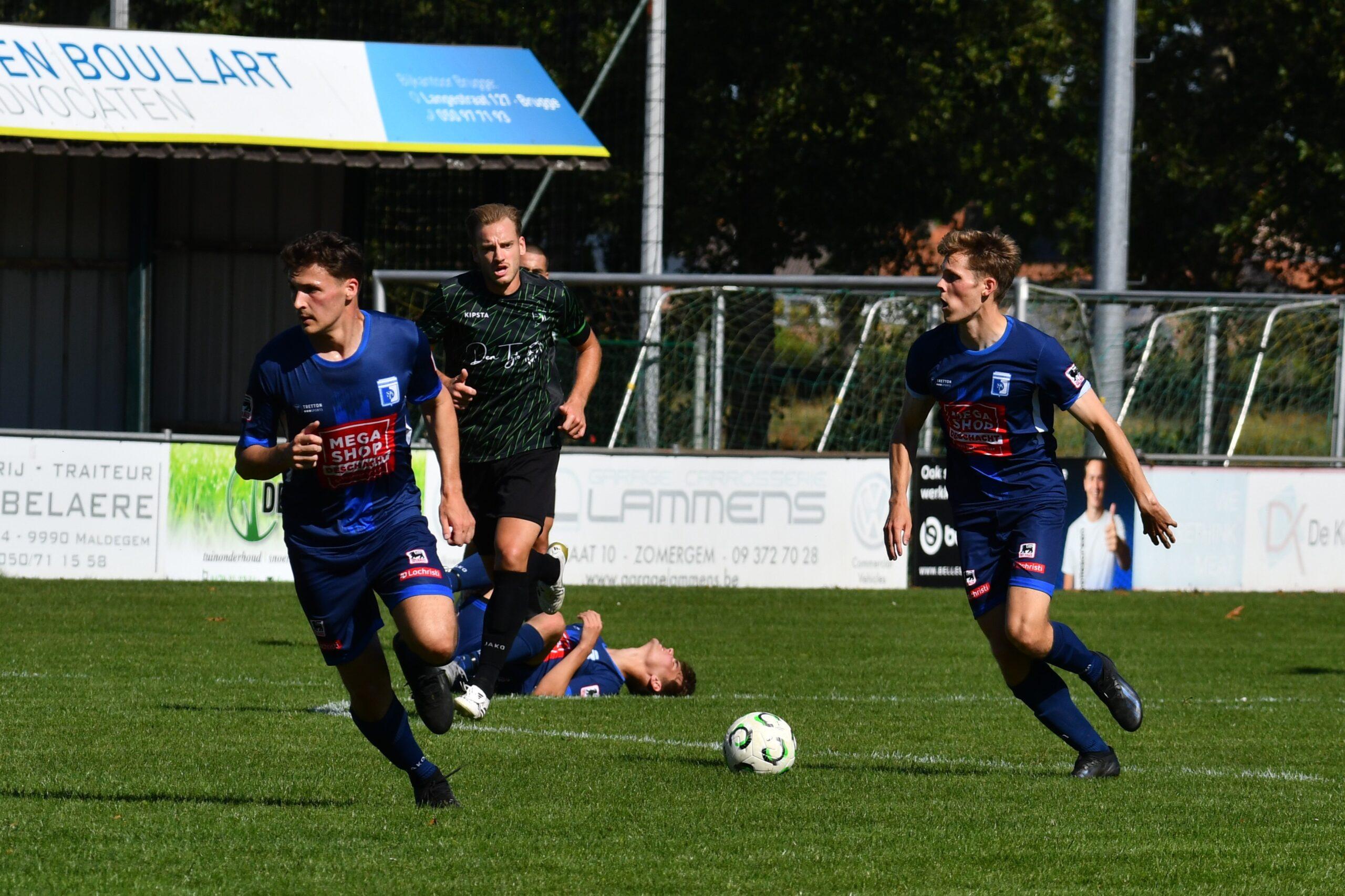Er was amper afgefloten en Lochristi stond al op voorsprong. Stefan Moens won een duel in het middenveld en kon zich al te makkelijk doorzetten. De bal belandde uiteindelijk bij Lars Maes die meteen profiteerde. Een lange bal van Bauke Famaey bracht de thuisverdediging opnieuw in verlegenheid en Stefan Moens benutte ook deze misser met een fraaie lobbal.